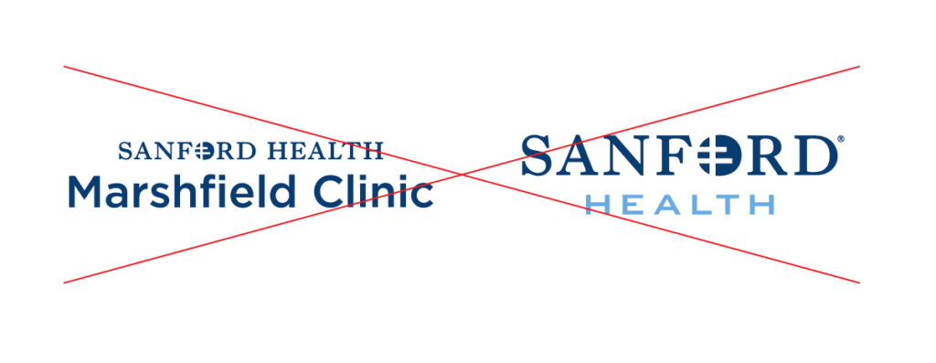 In copy, references to the brand name Marshfield Clinic should not include “Sanford,” “Sanford Health” or “Health System.” Also see references in copy.